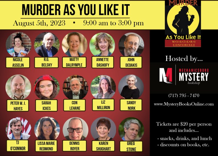 Only six more days to get your tickets for this event! I will be there with all these fine authors. There will be three panels covering topics such as the importance of research, the gray areas of life for investigators, and how country and city crimes differ — or are the same! In between you get to meet the authors, ask questions, and have your books signed. And lunch, too! Come join us for the fun!