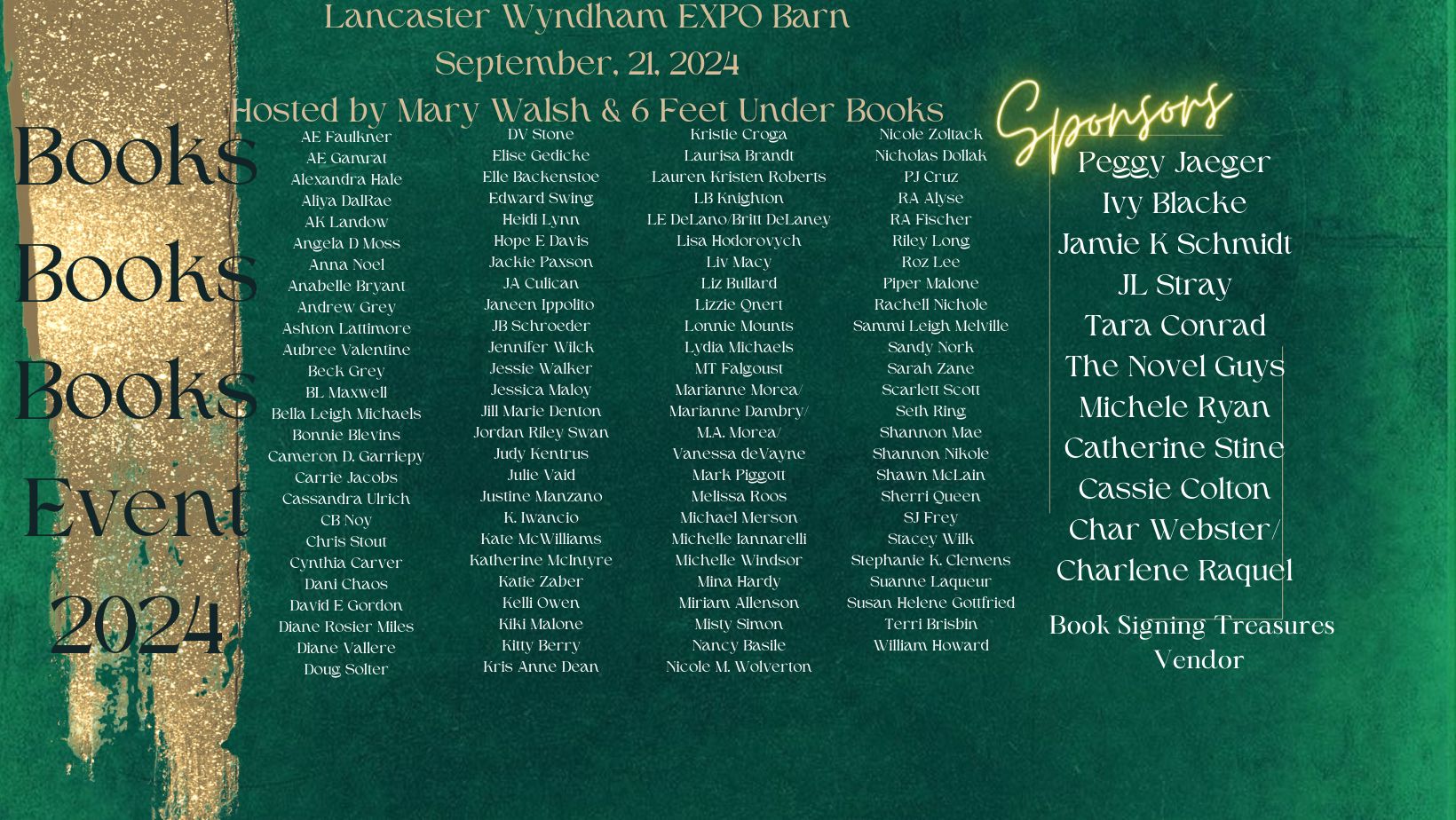 I want to say a huge thank you and give a big hug to everyone involved in BooksBooksBooks 2024! From the organizers (Mary Walsh and Six Feet Under Books’ Amy Garnet) to the sponsors and authors listed above, everything ran impeccably.
