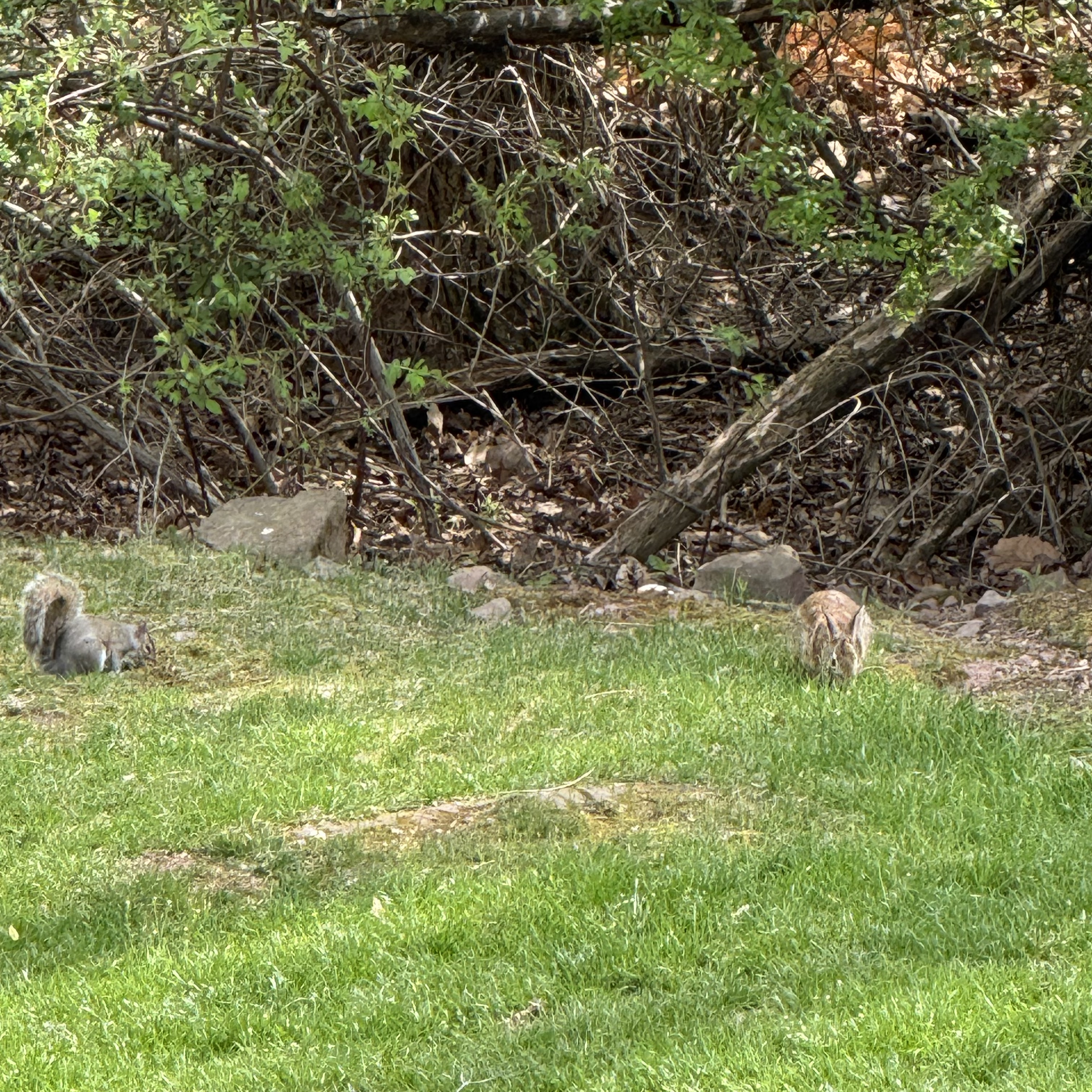 The bunnies also came out, although this gang doesn’t seem at all interested in Easter. There are actually four in this bunny family, but I could only catch a photo of three of them together. The bonus was seeing the squirrel out foraging with the bunny. I don’t often see the two out at the same time, let alone this close together! They are so much fun to watch.