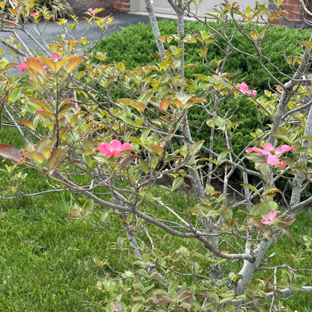 Now that the weather is warming up, the flowers are out! The violas popped up in a new spot this year, and the pink dogwood, which has been struggling after getting an unexpected freeze last year, at least presented me with a few blooms. I’m hoping it will get back to more normal flowering next year.