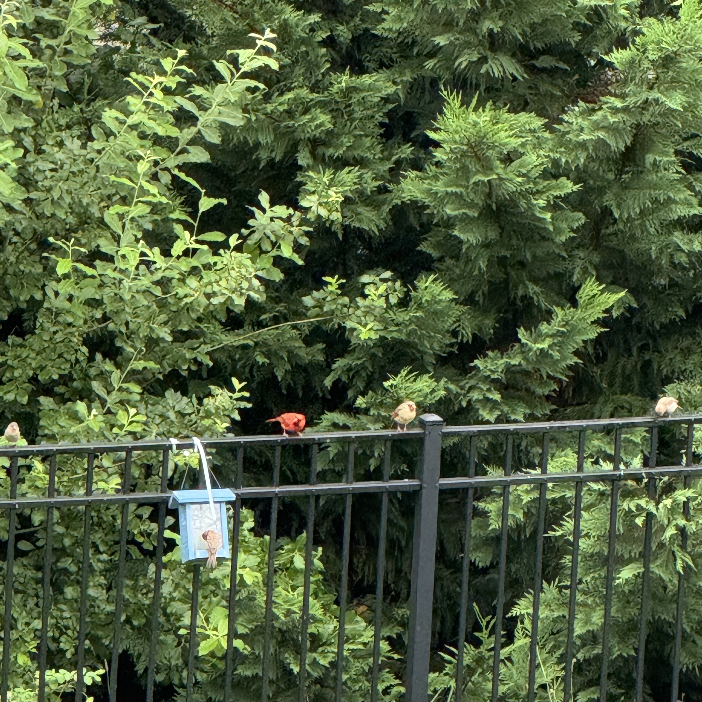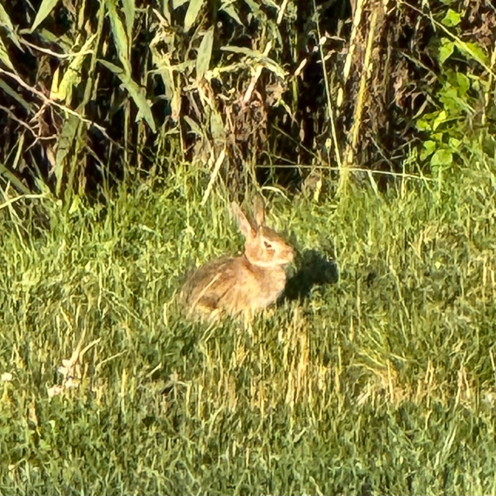 I still manage to keep tabs on the wildlife in our front and back yards. I go out early, before the temperatures hit cooking level. This month it was birds, bees, and bunnies that kept me buzzing.